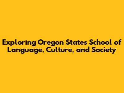 Exploring Oregon State's School Of Language, Culture, And Society