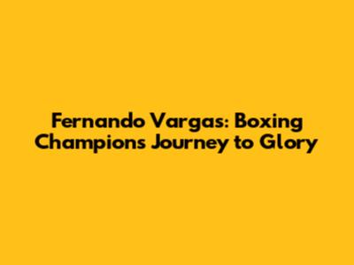 Fernando Vargas: Boxing Champion's Journey To Glory