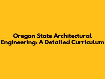 Oregon State Architectural Engineering: A Detailed Curriculum